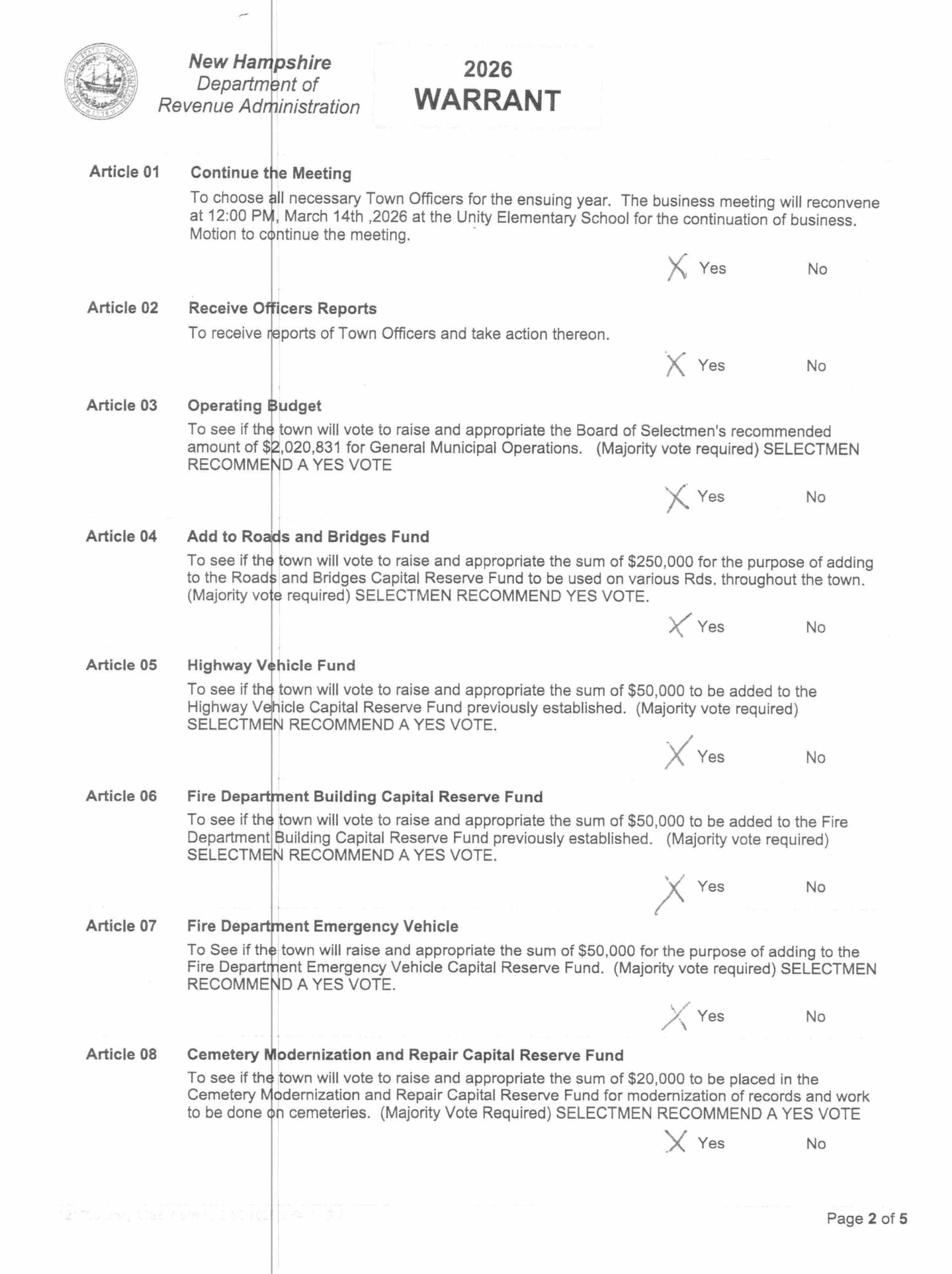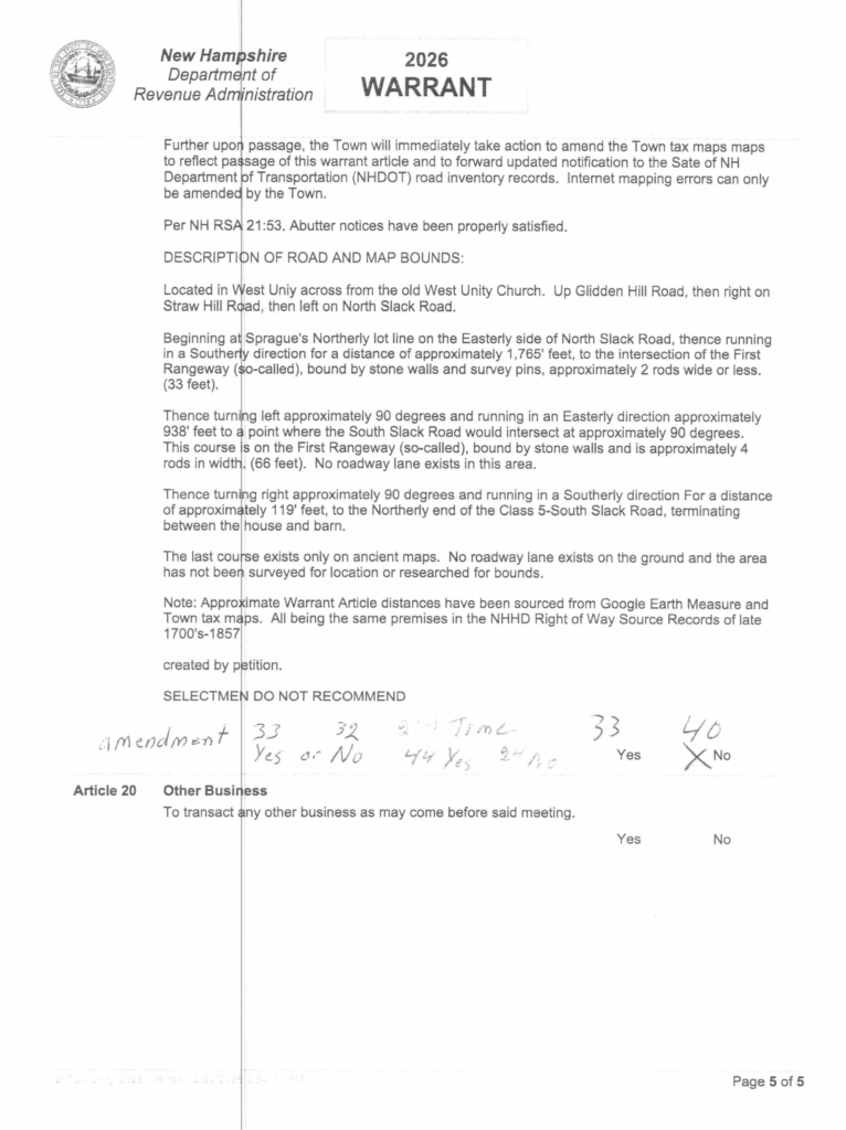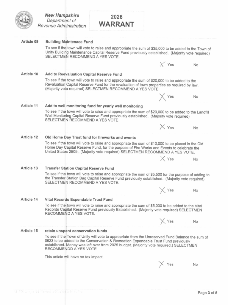 Selectmen Notices Meetings scheduled every 1st and 3rd Monday of each month. If meeting falls on a Holiday, it will occur on that following Tuesday. 2026 Town Warrant ArticlesÂ